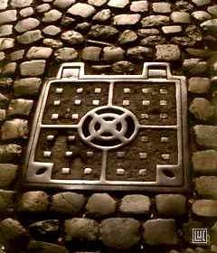 (* : Excepté pour certains, dont l'exceptionnel modèle de la photo n° 4 : un splendide monstre de 1,40 mètre de diamètre de tampon, aujourd'hui disparu -car remplacé par rien moins que 3 regards modernes- et dont nous ne connaissions qu'un seul autre exemplaire, à la Porte de Saint-Cloud à Paris, mais non patiné car situé hors-circulation, sur un trottoir.)